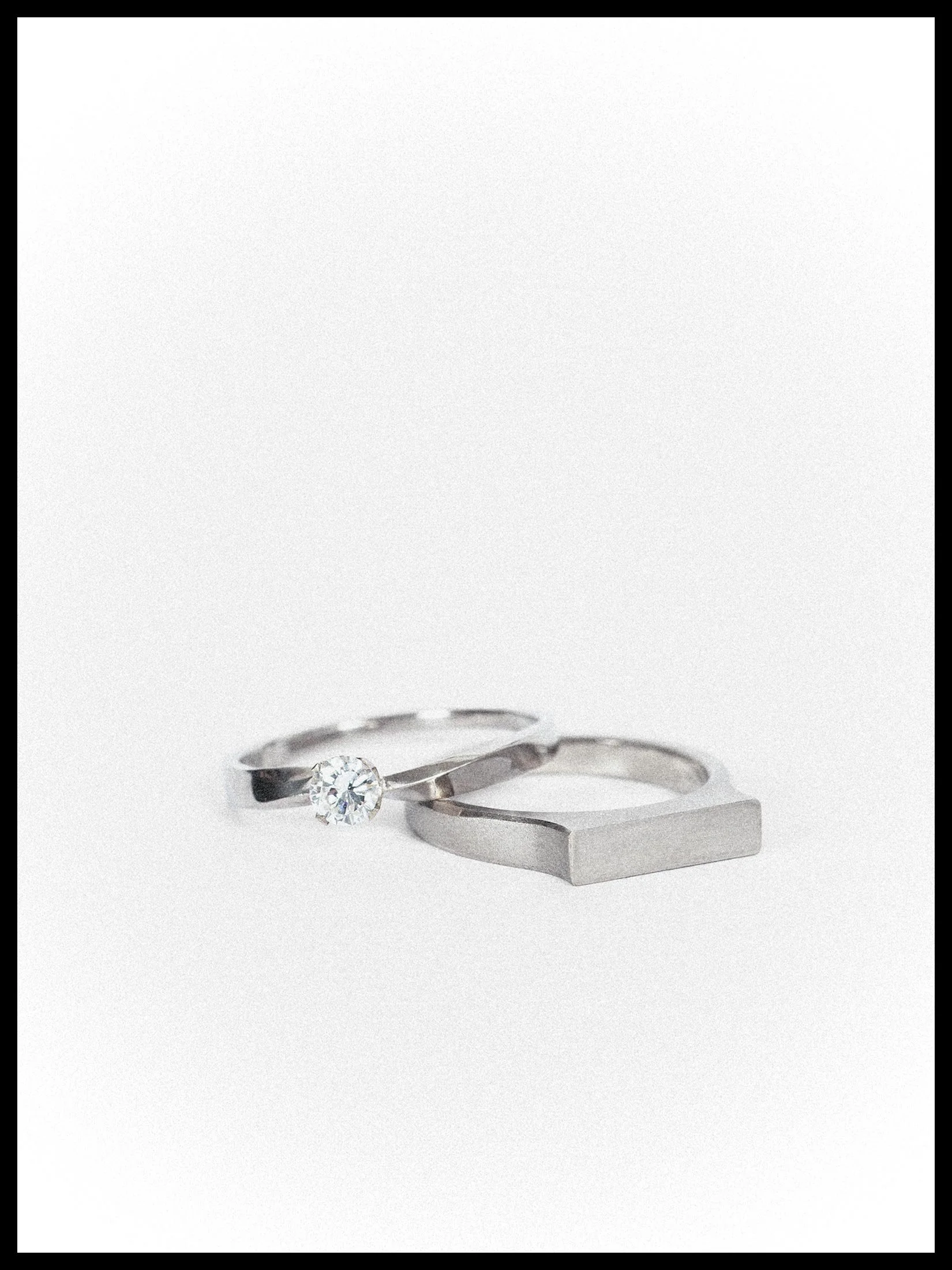 Stilvoller Brillantring, handgeschmiedet aus 750/ooo Gold. Die elegant geschwungene Ringschiene trifft auf einen in Zargenfassung gefassten Brillanten.